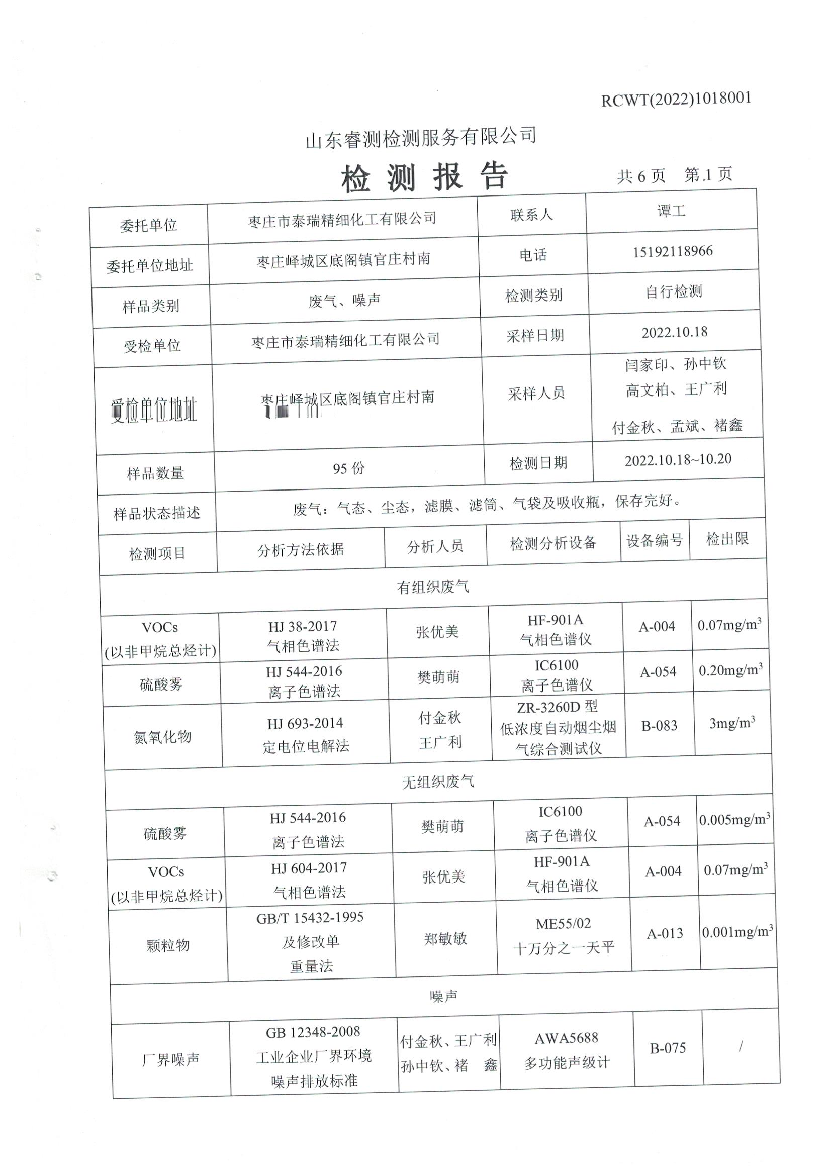2022年9月份環(huán)保檢測(cè)報(bào)告