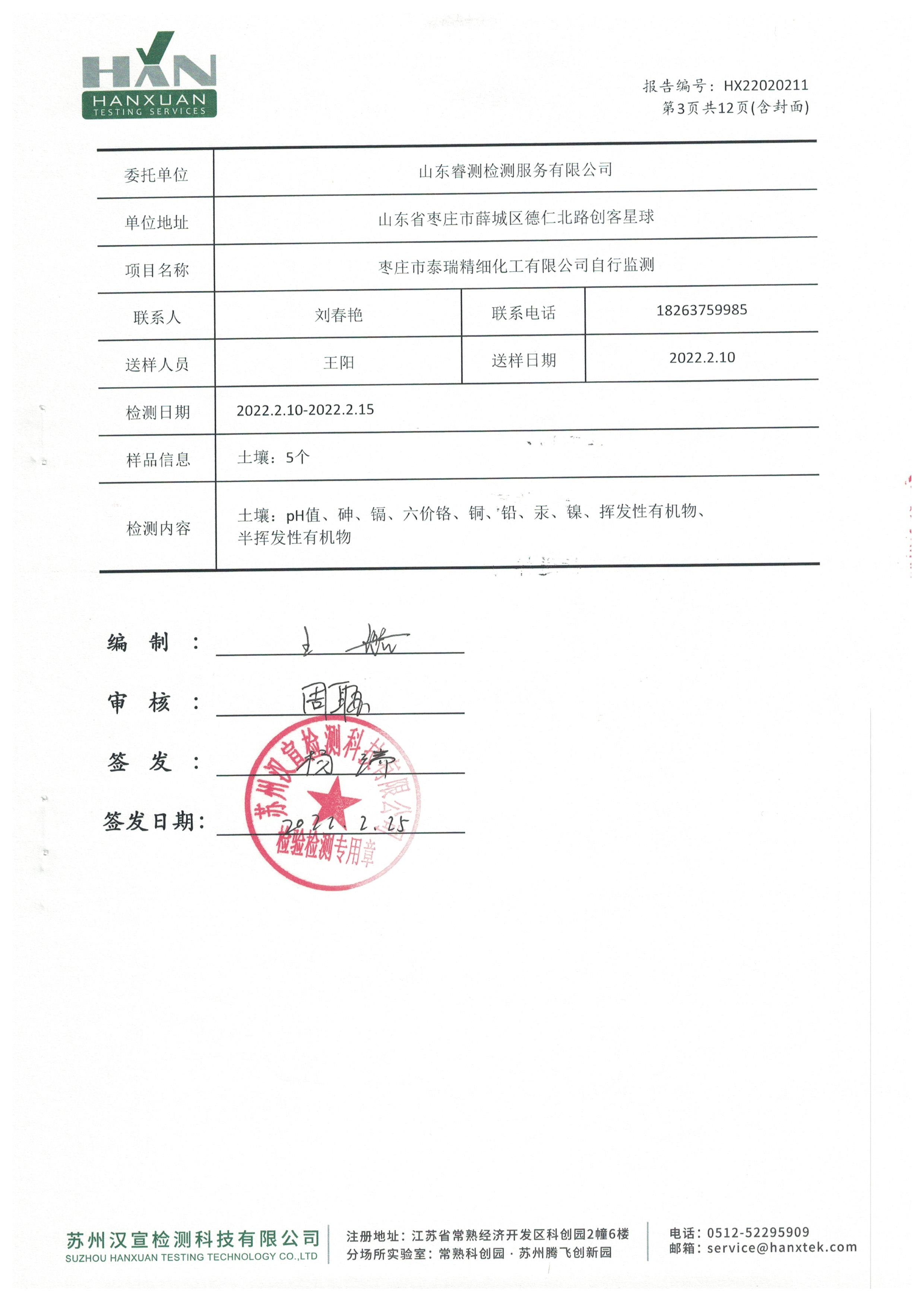 2022年2月份及第一季度自行檢測報(bào)告