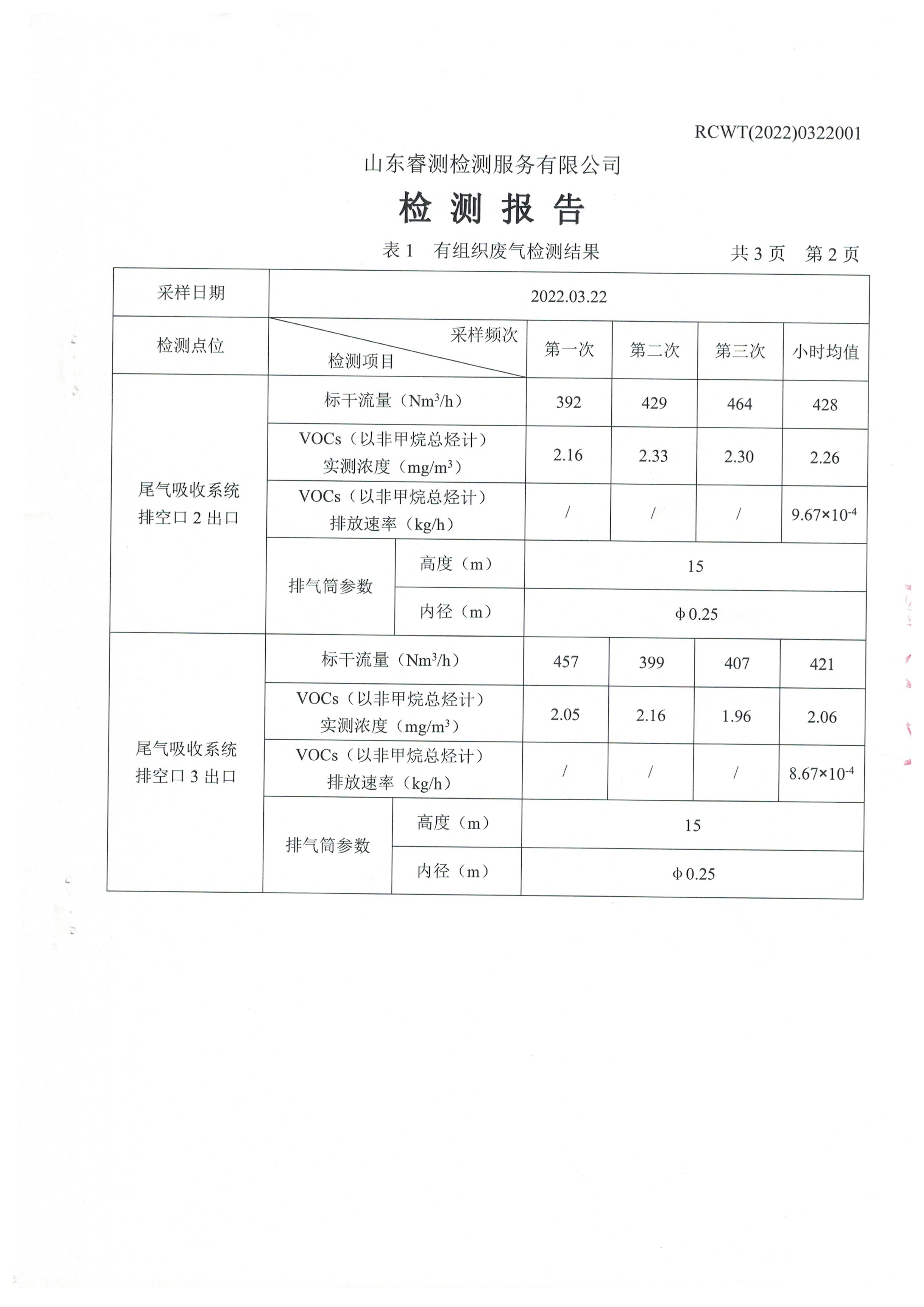 2022年3月份自行檢測報告
