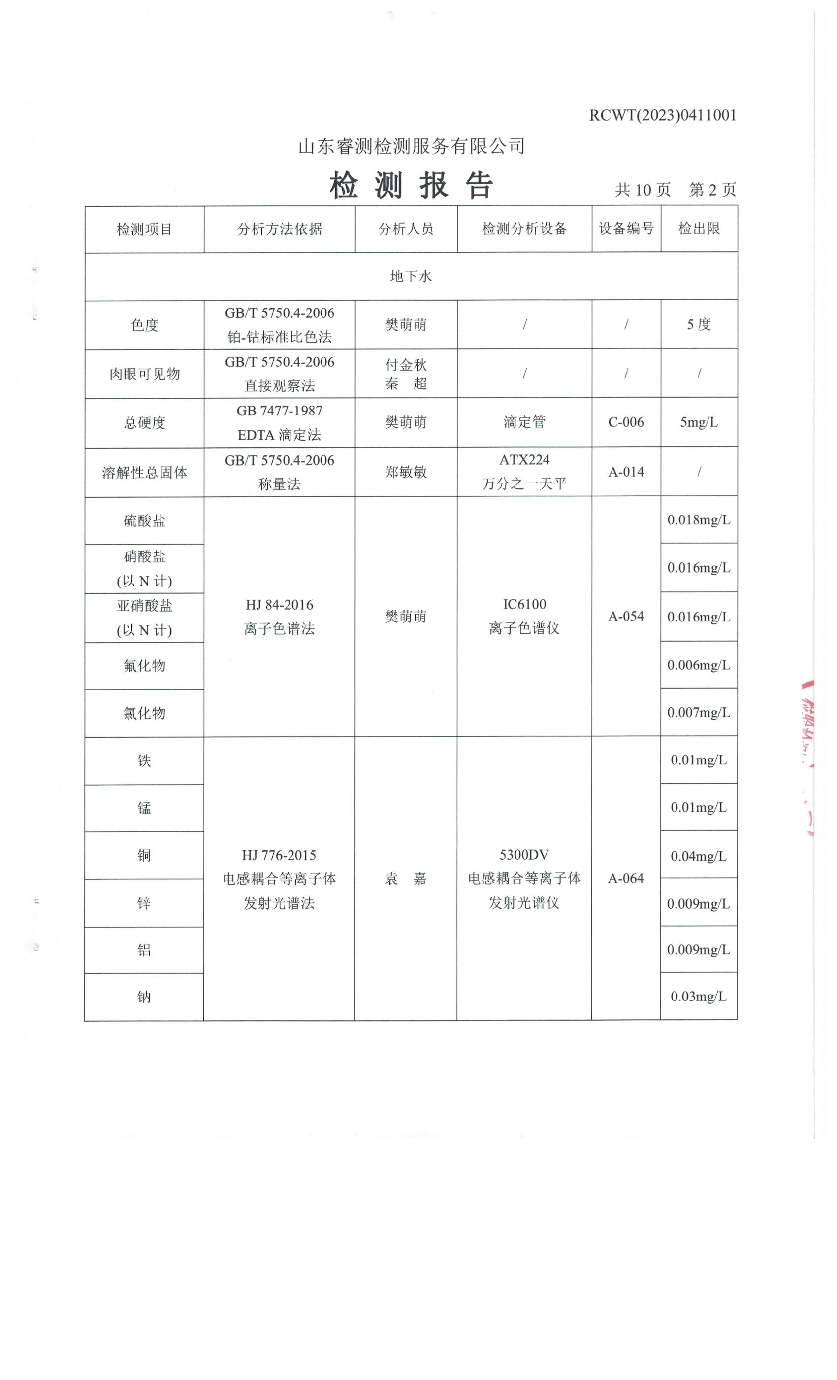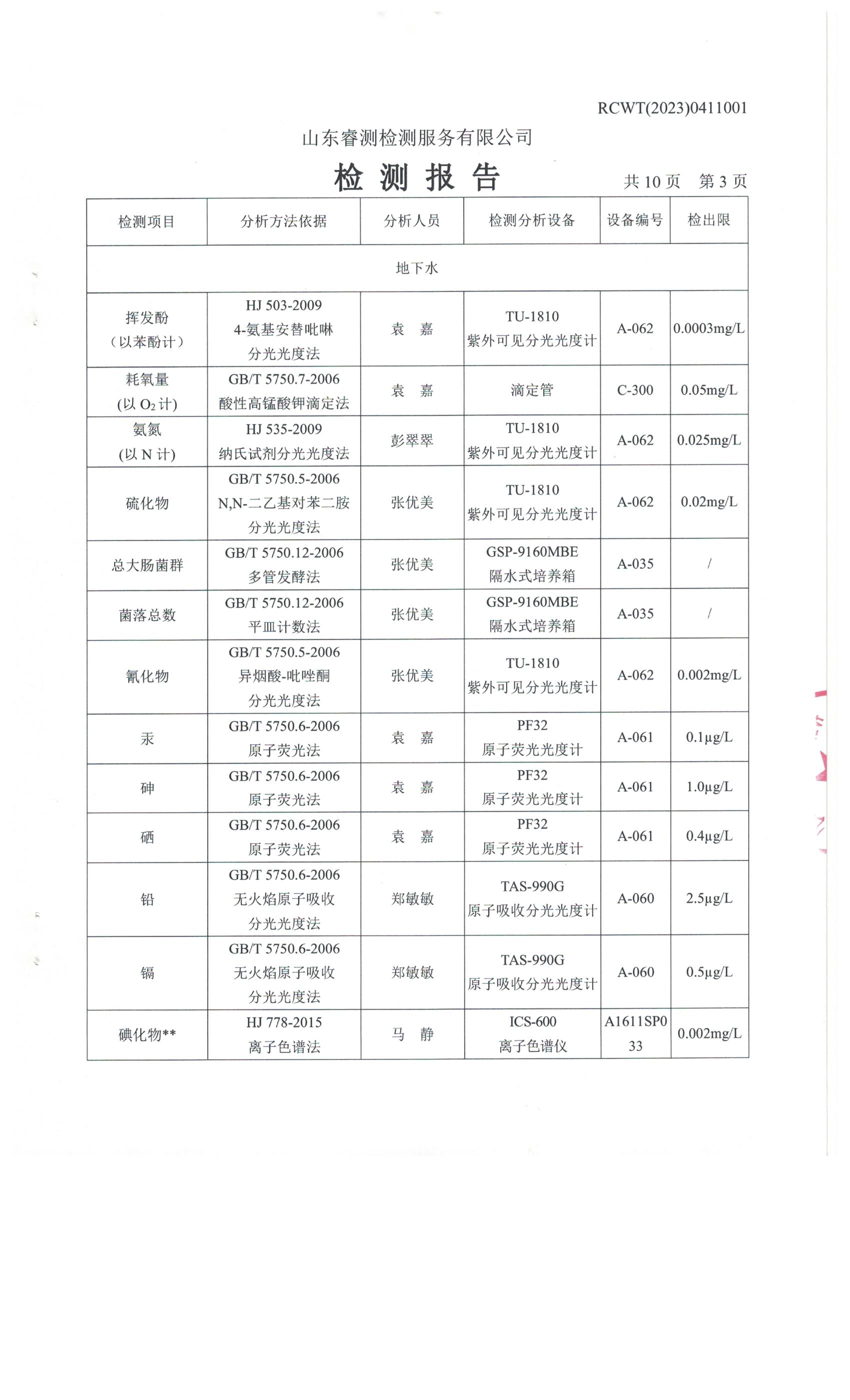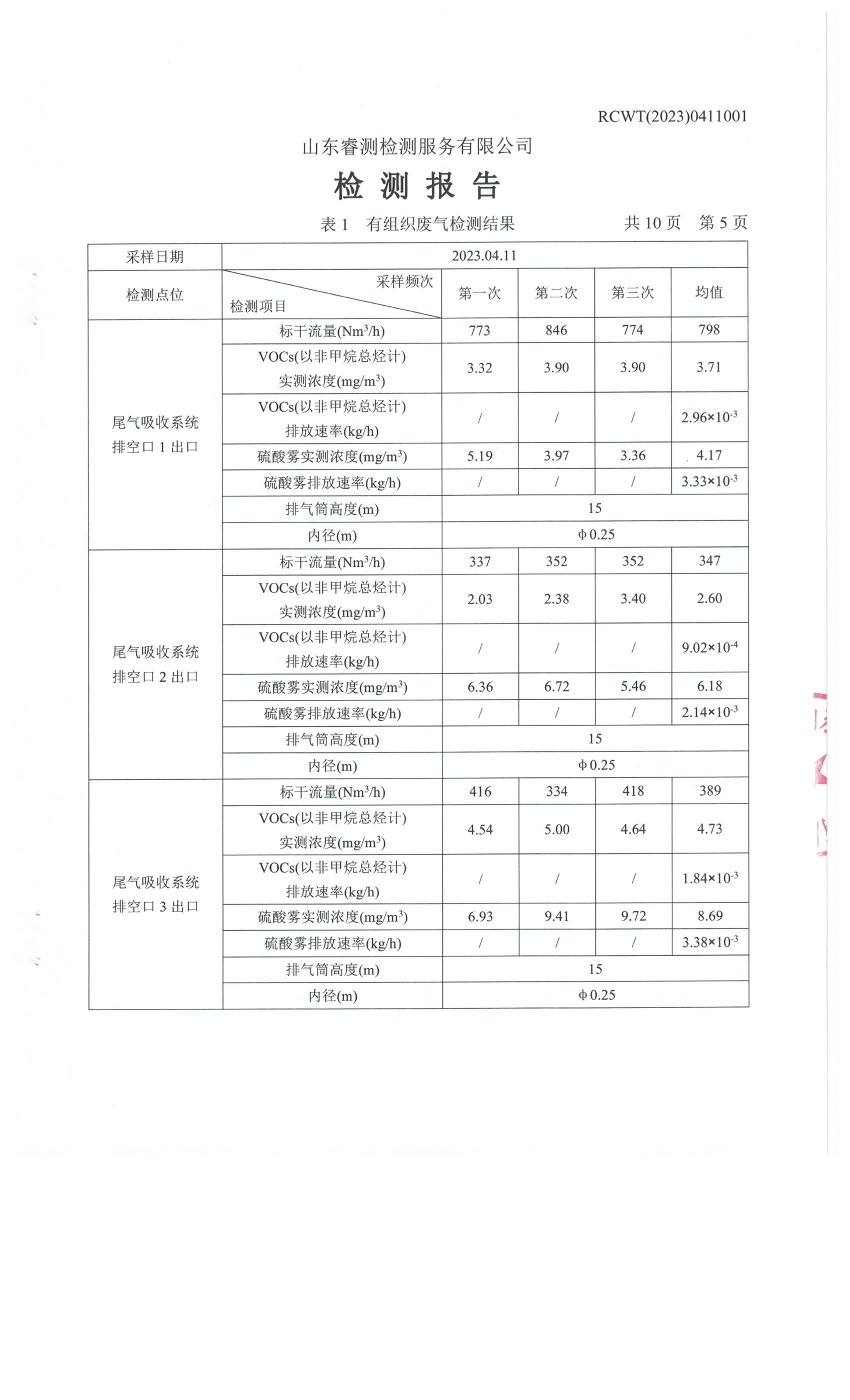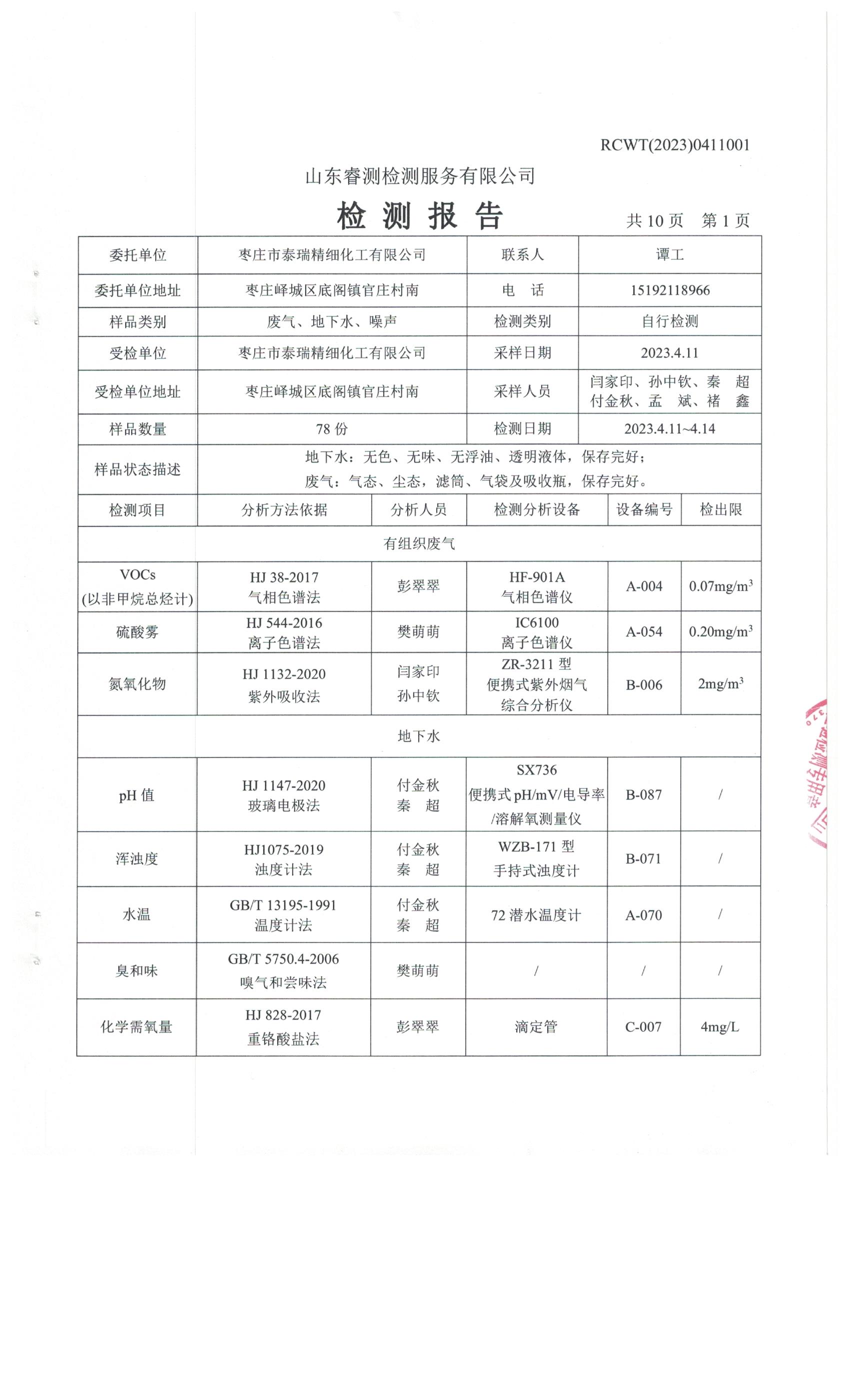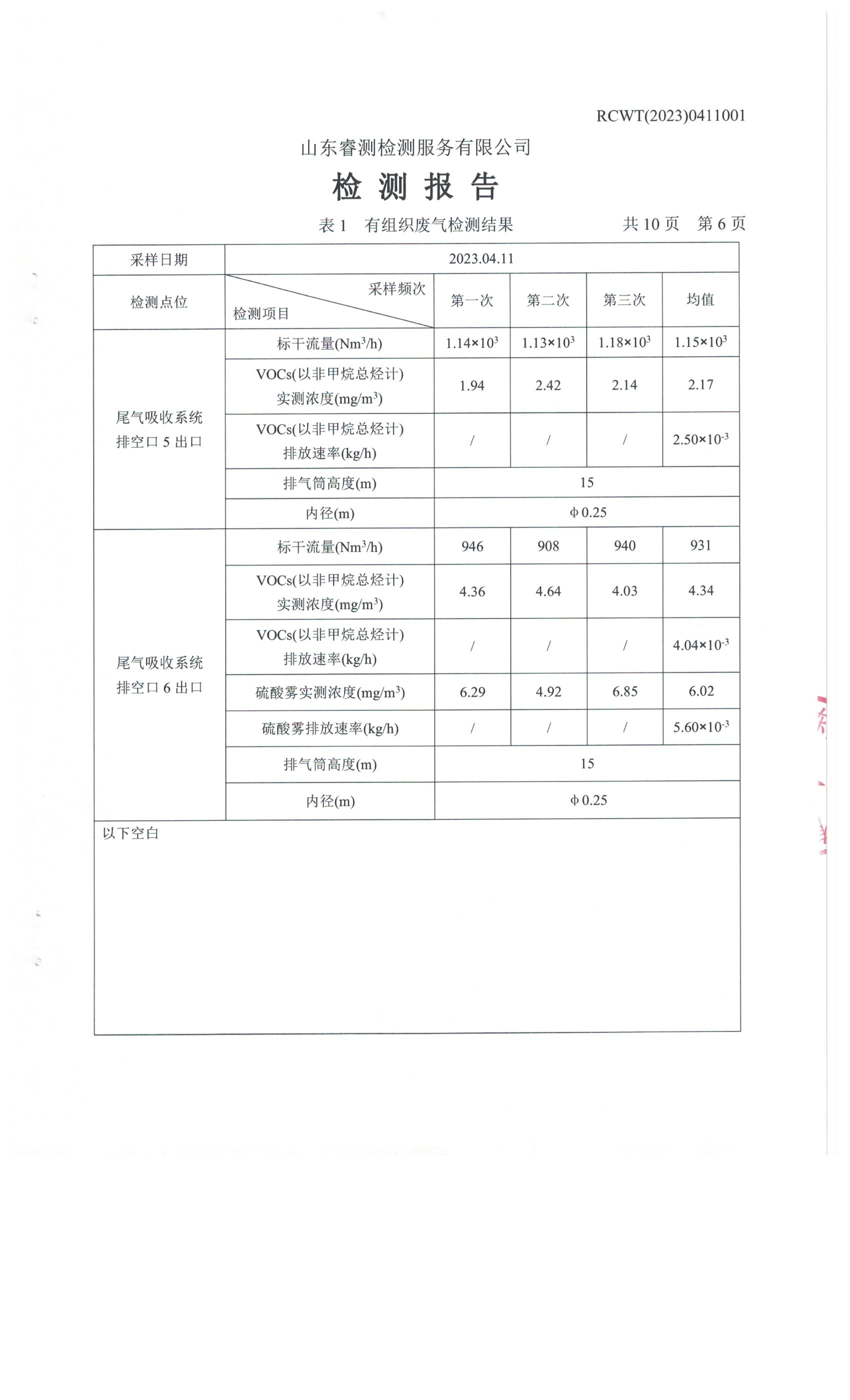 2023年第2季度(4月份)檢測報(bào)告